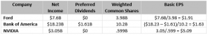 The calculation of EPS for three companies at the end of the 2017 fiscal year follows:
